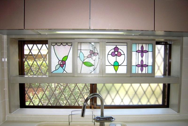 お施主様ご自身で購入された、とても可愛いステンドグラスを組み込んで、まるでショールームのようなキッチンに変わりました。