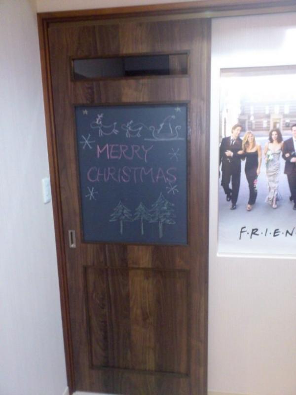 引き戸なのですが、ドアの真ん中に黒板塗装の板をはめ込み、メッセージボードとして使う事ができます。