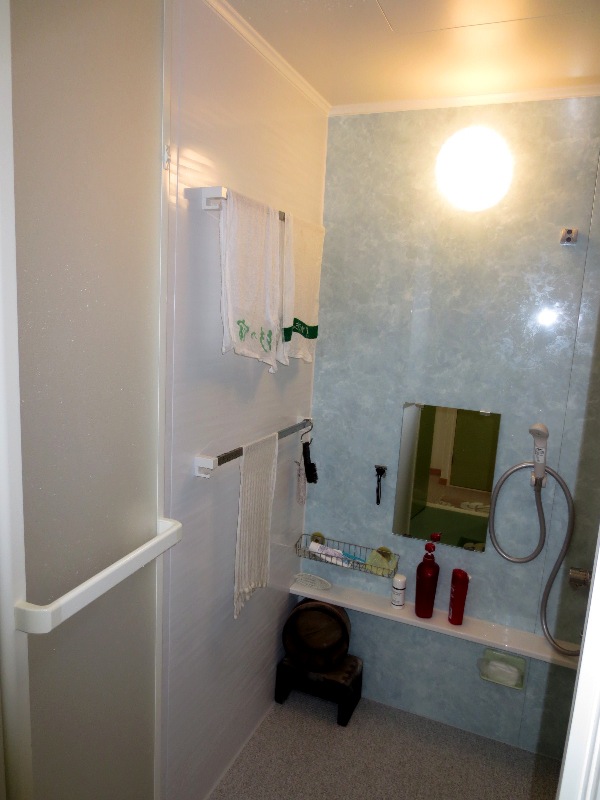 昔風のタイルを使ったユニットバスから、パネルのユニットバスへ交換しました。 アクセントカラーでブルーを使い、イメージチェンジです。 サイズがひとまわり大きくなりました。 また、床はカラリ床を使用しています。
