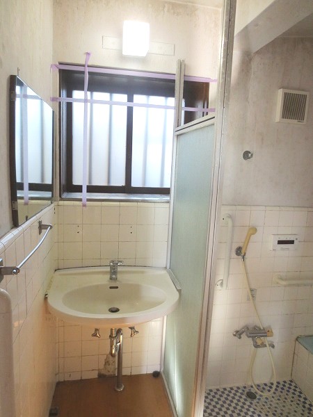 浴室との仕切りもきっちりさせて、タイルからクロス張りになりました。