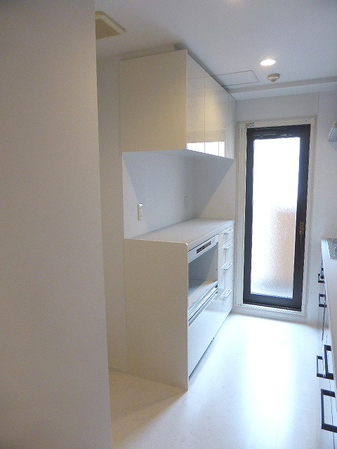物がのっていても扉で隠せますので、キレイにキッチンを見せることができます。
