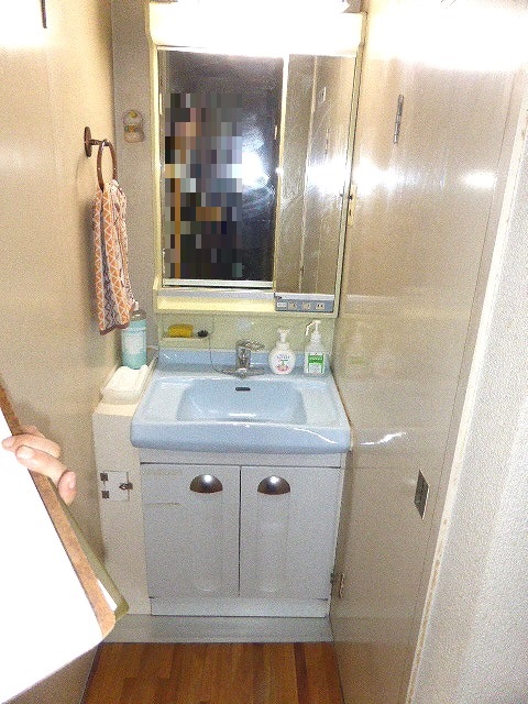 洗面スペース→お施主様が持っていらしたミラーに合わせるように、造作で作り上げました。