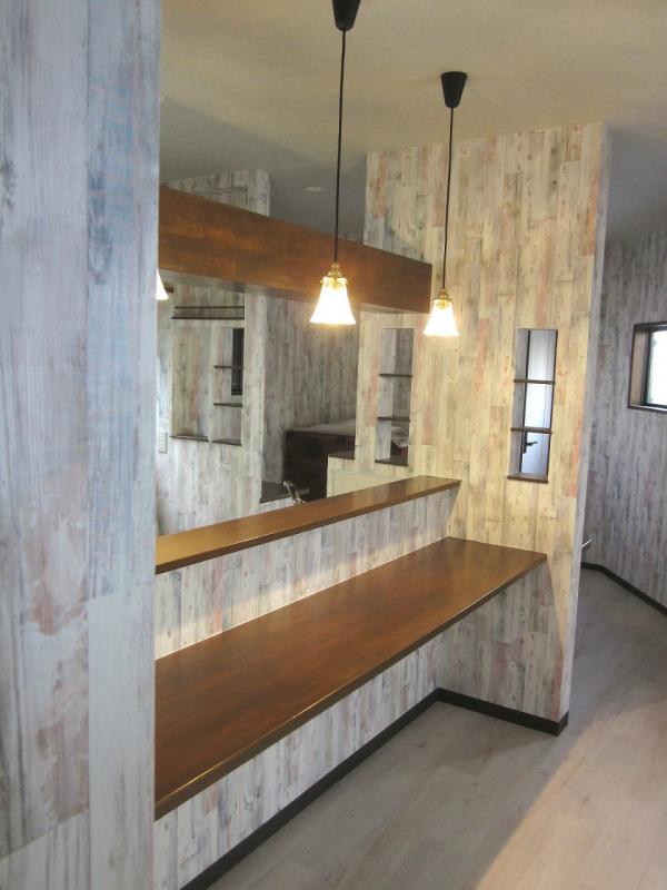 お客様が座るカウンター部分の上部には、レトロなイメージの照明を吊るし、手元を明るくてらします。