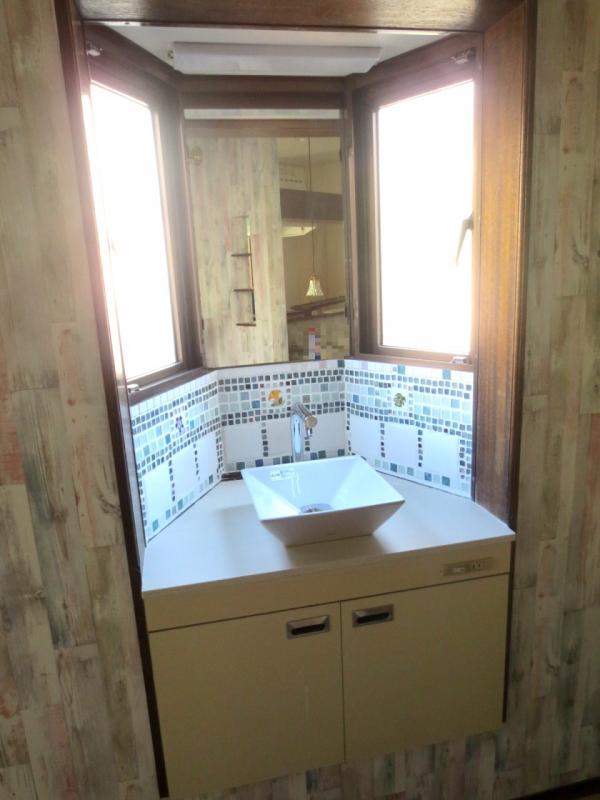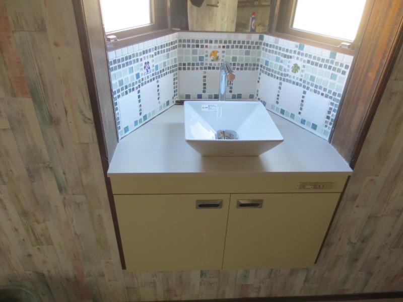 洗面台は、お施主様とスタッフでタイルを貼りました。