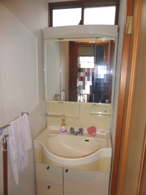 コンパクトでシンプルな洗面化粧台にお取替えです。