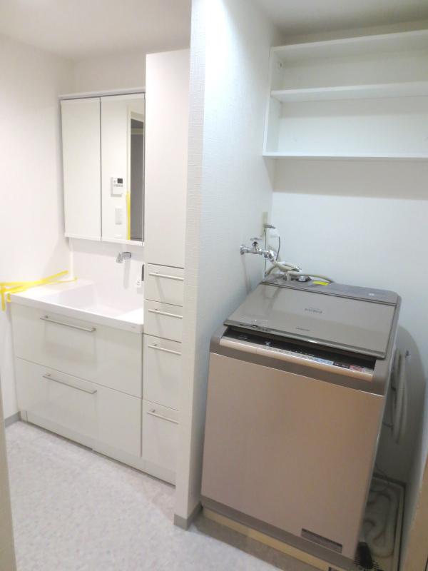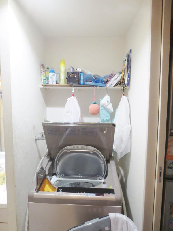 洗面台隣にある洗濯機スペースですが、上部に棚を取り付けました。