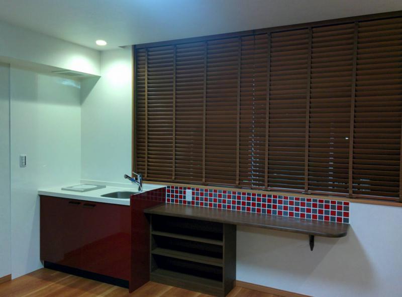 エコカラット・柄クロスを張り、木製ブラインドを取付