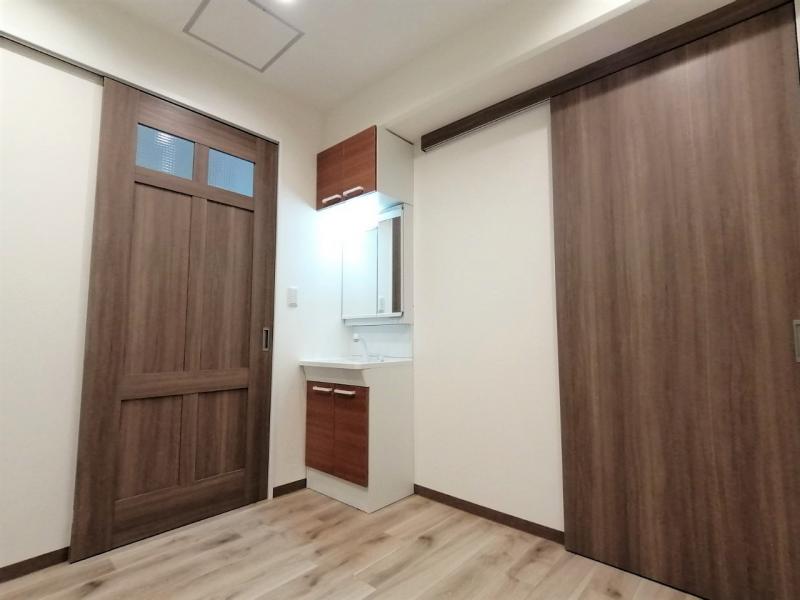 新しい多目的室には、部屋の雰囲気に合うおしゃれな洗面台を設置。場所をとらないように細いタイプですが、洗面ボウルは広々として深いので、使い勝手はいいです。