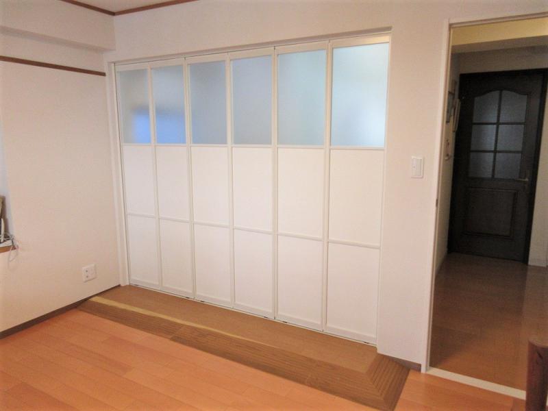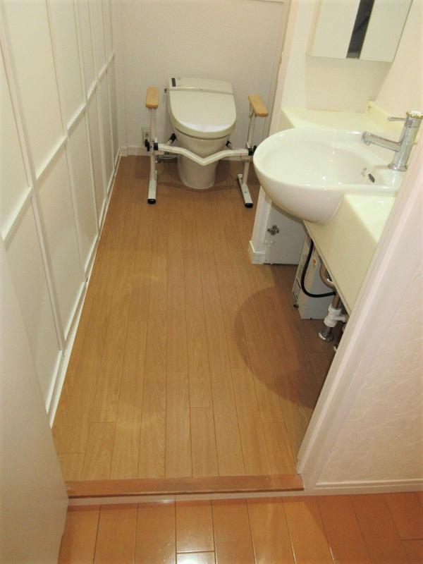 ご家族が車いすを使用されることになり、トイレ入口ドアが狭く、また段差があるため、隣の洋室側から出入りができるようにしました。