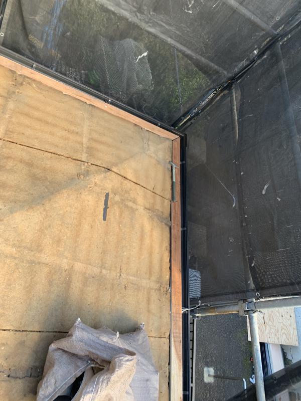 足場を立て、屋根の撤去→下地工事→防水シート貼り→ガルバニウム貼り工事、と進んでいきます。