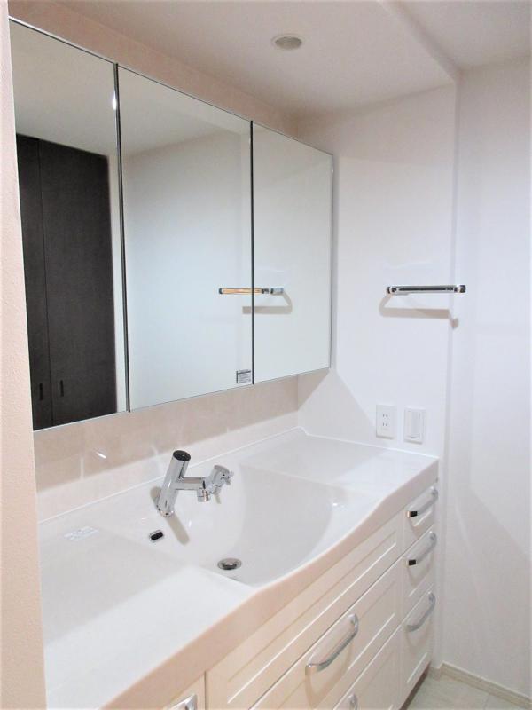 全面真っ白な、スタイリッシュな洗面化粧台へ交換。