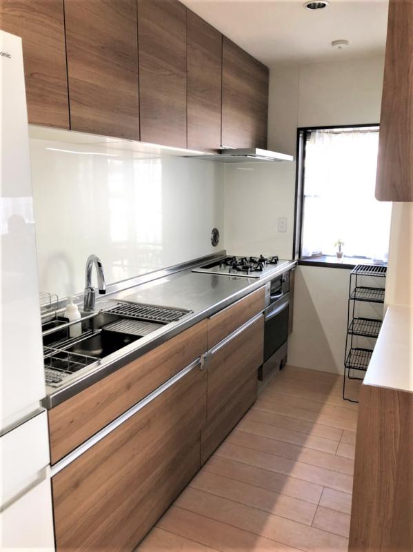 少し明るめのブラウン・チェリーウッドのシステムキッチンへの交換工事です。
