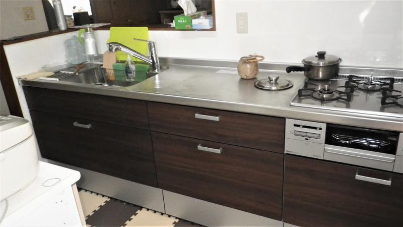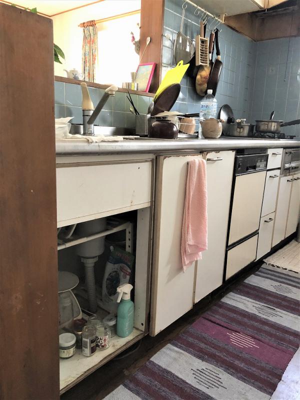 長く使い込まれていたキッチンですが、収納の扉が外れてしまったりしていたため、お取替えすることとなりました。