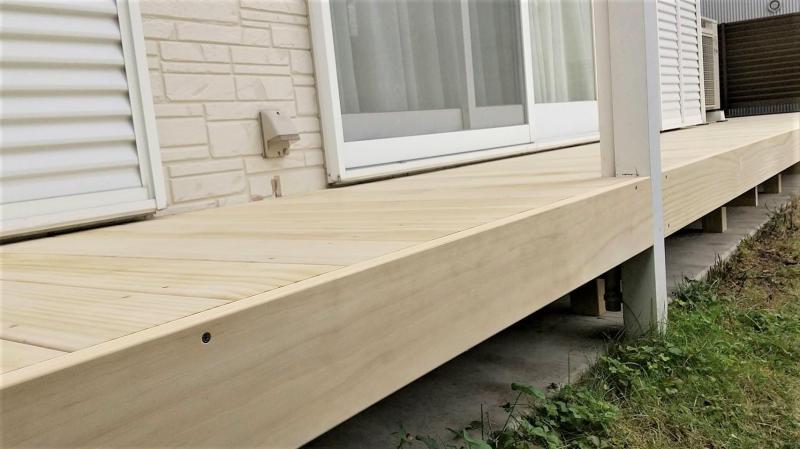 経年劣化で色褪せ、朽ちてきたウッドデッキを撤去・交換しました。