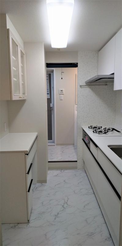 白で統一した明るく清潔感のあるキッチンへ変わりました。