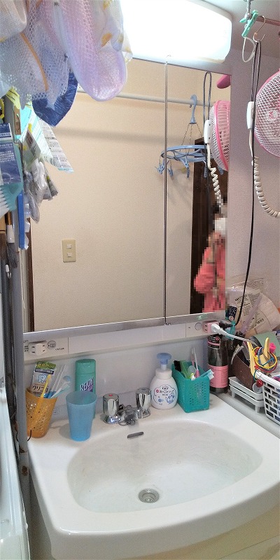 上部はミラーキャビネットになっており、収納力はアップしました。