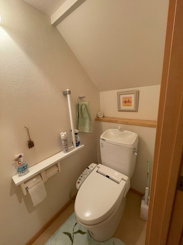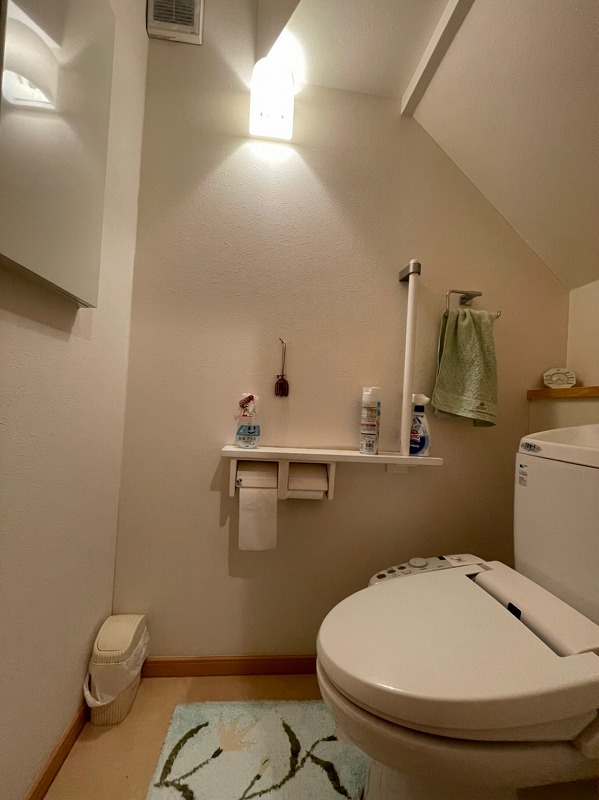 収納キャビネットと一体化した紙巻器を付けており、トイレ廻りをすっくりと見せてくれます。