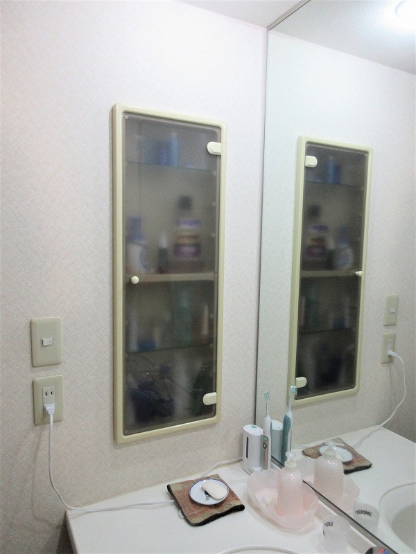 サイドの埋め込み収納はお取替え。中が見えない扉を取り付けました。来客時も安心です。