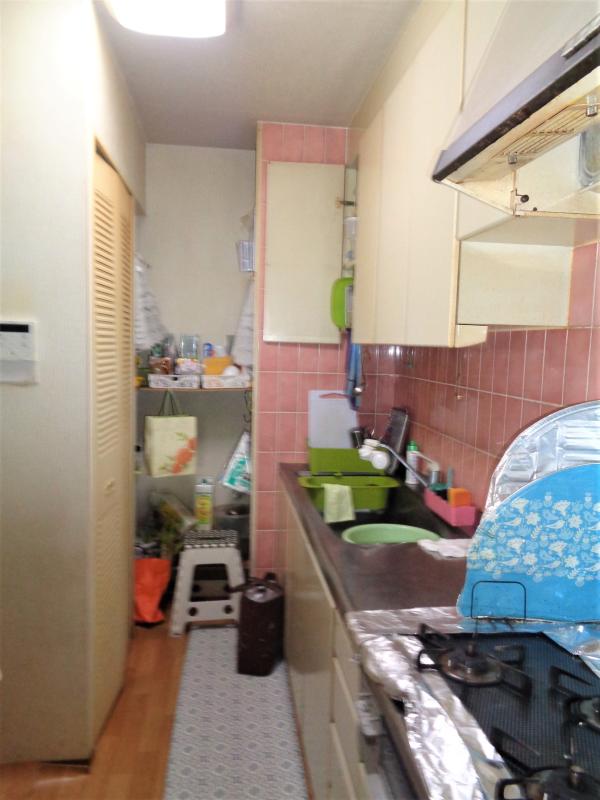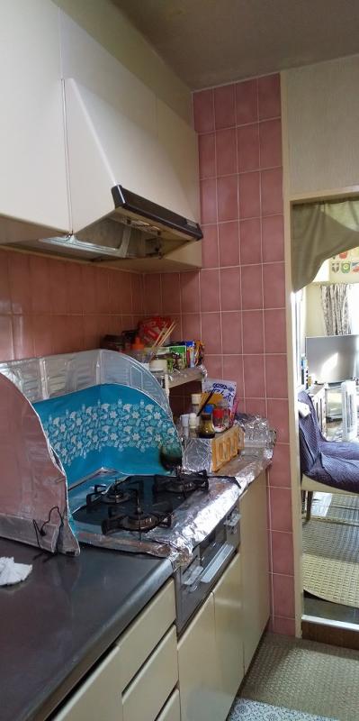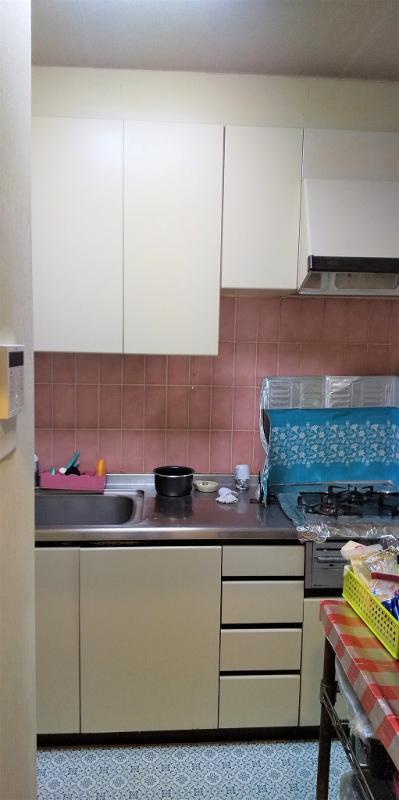 システムキッチンは、ピンクを使用したカラフルなキッチンから木目(チェリー)の扉・ホワイト系のカウンターとキッチンパネル、といったシンプルな配色のキッチンへ変わりました。