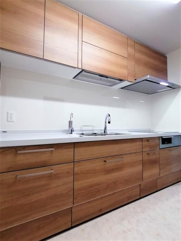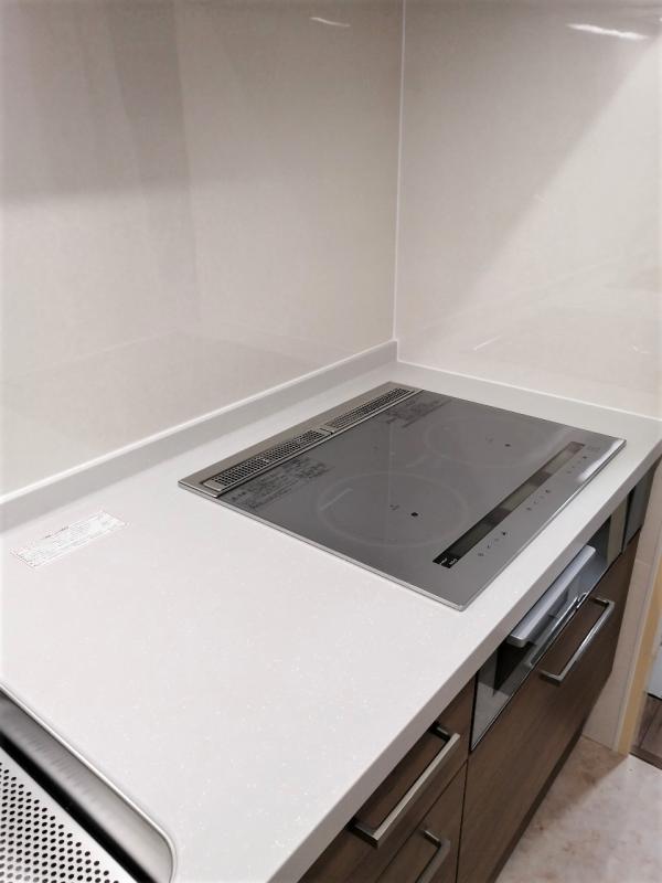 キッチンカウンターはステンレスから人造大理石へ、ガスコンロはIHへ、水栓はハンズフリータイプへ、それぞれ変わっており、見た目にもすっきりとした仕上がりです。