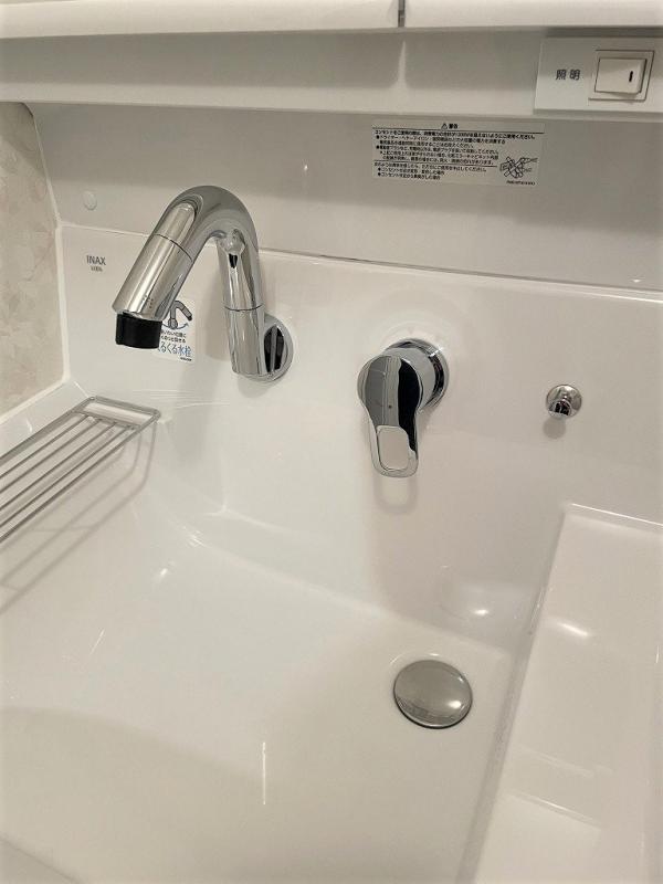 洗面ボウルは深く平らな形をしていますので、バケツや洗面器など、使用しやすくなっています。