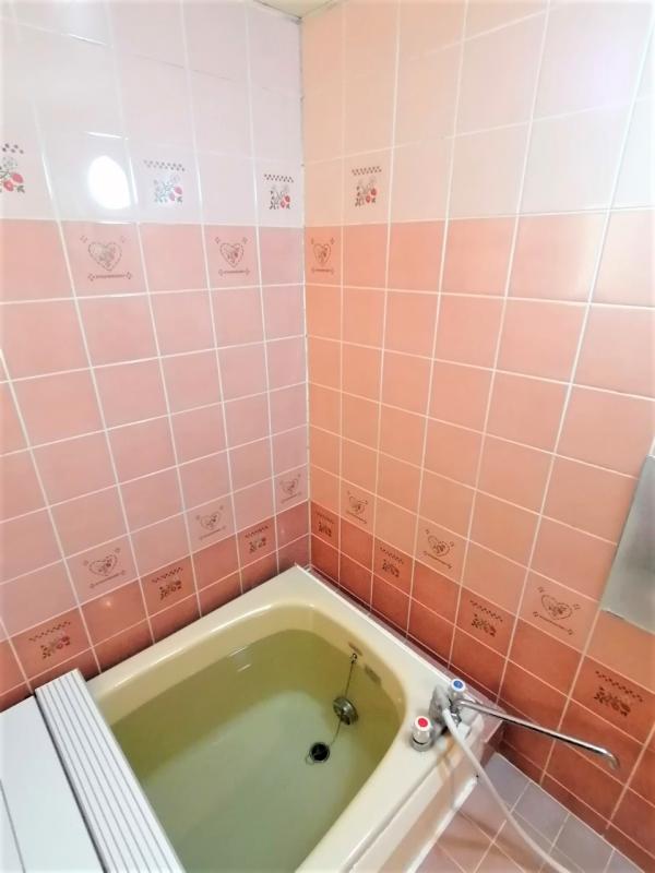 築50年のマンション。浴槽スペースが床から下がった構造で、ユニットバスを設置することができませんでした。