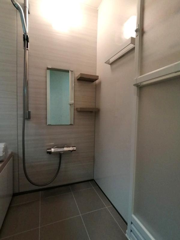 むき出しの配管は隠れ、タイル貼りの床と壁は専用床・パネルへ変わり、以前と比べるとスッキリしました。