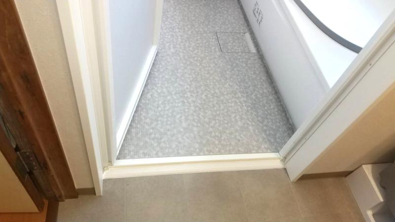 床高さはドアと同じにして、入口の大きな段差は解消されました。