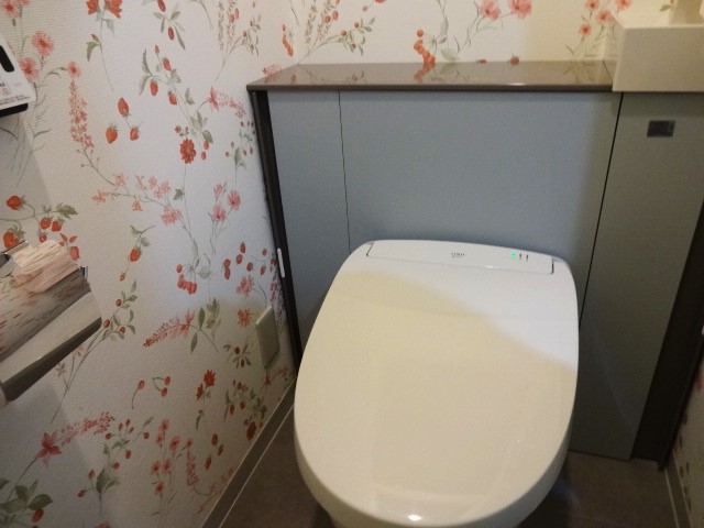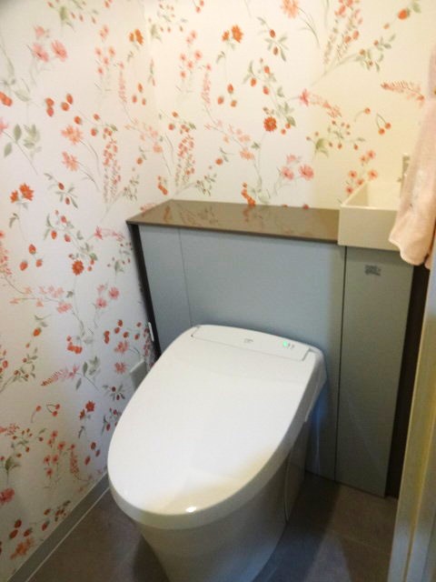 お気に入りの壁のクロスは貼り替えず、トイレ本体と床CFのみの交換でした。
