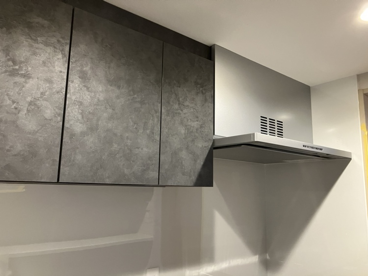 レンジフードは、雰囲気を合わせたシルバーのスリムタイプです。