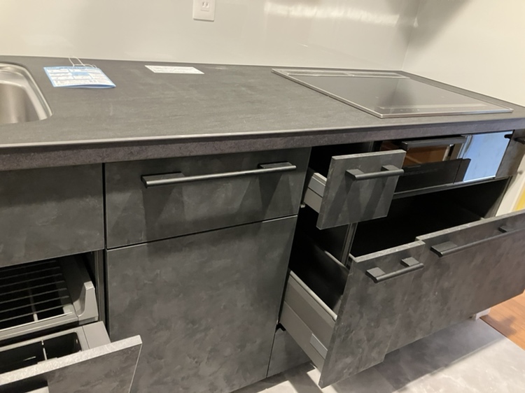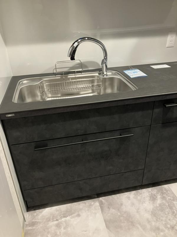 コンロはガスからIHへ変更。食洗器もとりで高級感のあるブラックのキッチンへ変更。
