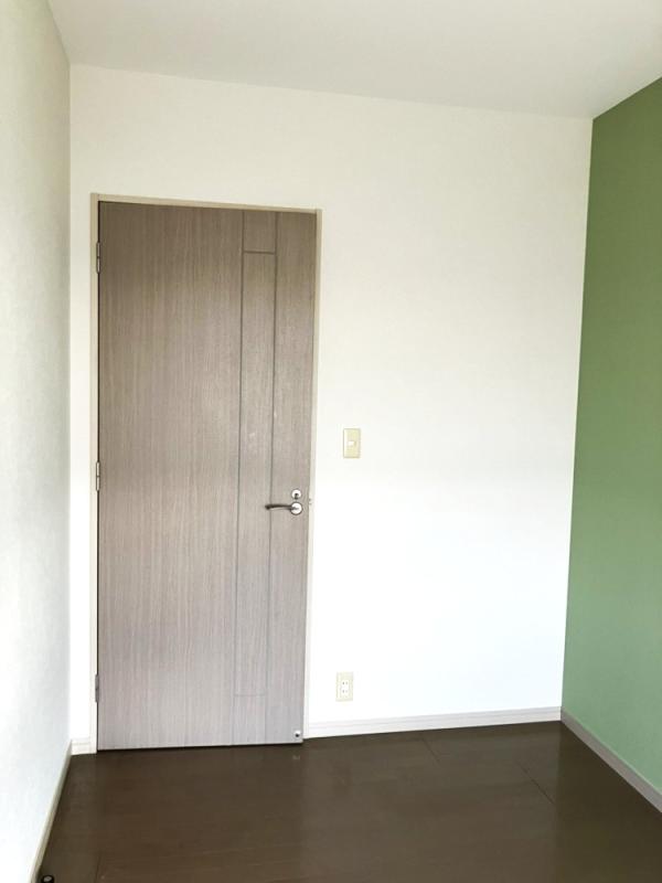 右の部屋はグリーンのクロスをアクセントに使い、左の部屋はベージュ系でまとめて、違う雰囲気に。
