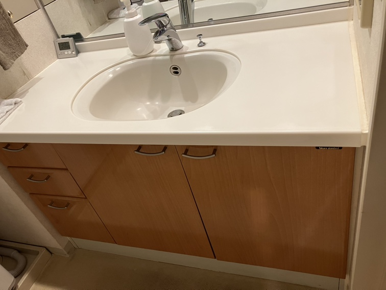 鏡は残し、下台のみの交換工事。
