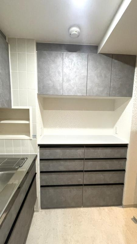 今まではなかった、上部の吊り戸棚が増え、収納力がアップしました。
